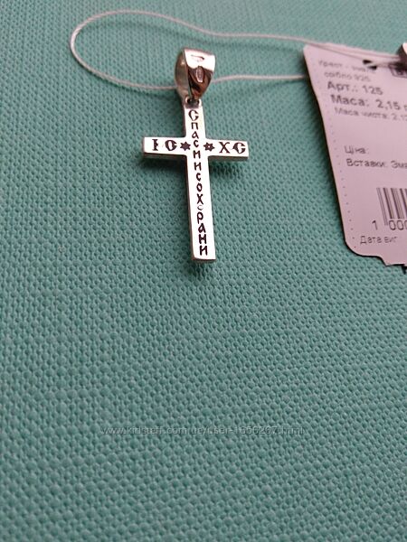 Подробное описание: Серебряный крестик с эмалью спаси и сохрани