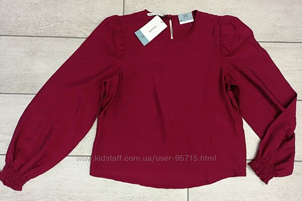 Базовая блуза с круглым вырезом, длинными рукавами-баллонами и завязками на манжетах. Застежка-капля сзади на потайную пуговицу.