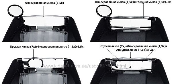 Mg81007-a оснащаются двумя акриловыми линзамикратностью 1.5Х . Дополнительно к ним, на корпусе размещена лупа