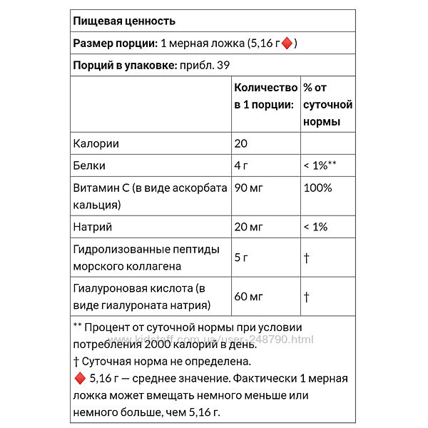 - Гидролизованные пептиды морского коллагена 5 г;