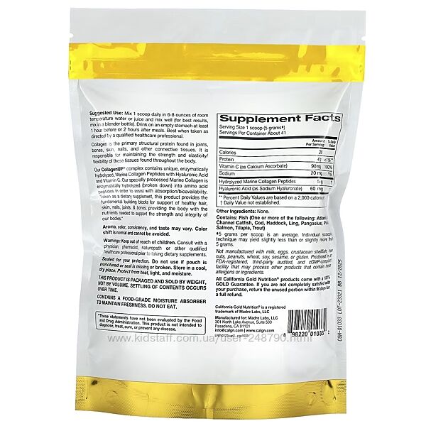 1) Collagen UP Морський колаген 1 і 3 тип із вітаміном С, США, пептиди колагенуCalifornia Gold Nutrition Collagen UP Морський колаген 1 і 3 тип з вітаміном С