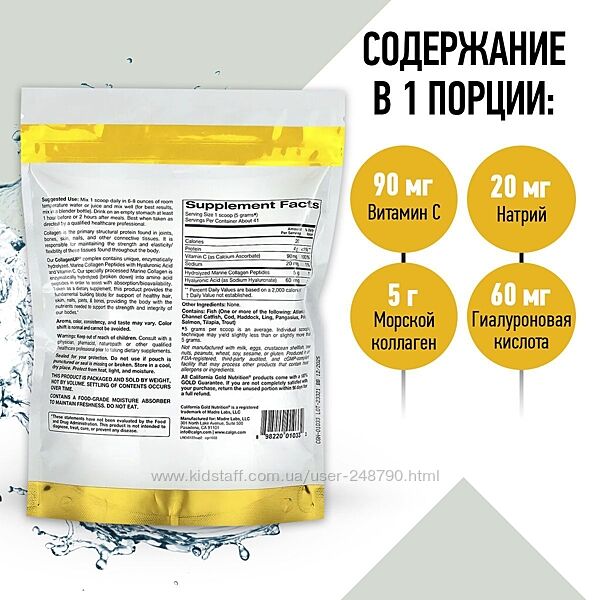 2) California Gold Nutrition Collagen UP Морской коллаген 1 и 3 тип с витамином С