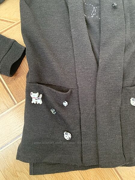 Подробное описание: Reserved кардиган для девочки черный с карманами 134 см, нашивка