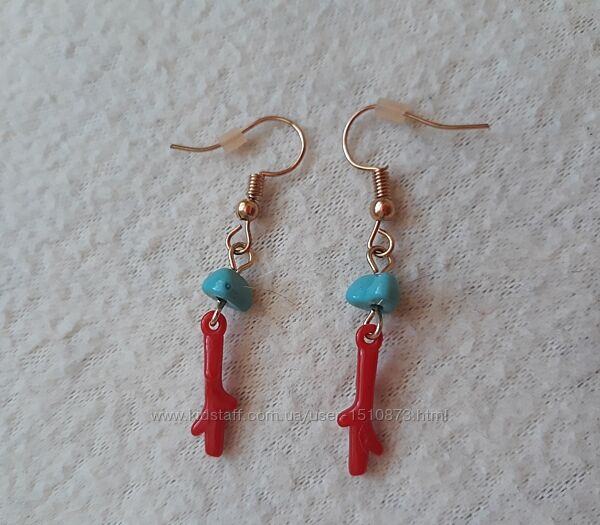 Продам новые серьги. Привезены из Франции. В упаковке. Длина - 4.7 см.Миленькие и легкие, сделаны "под бирюзу с кораллами", морская тематика.