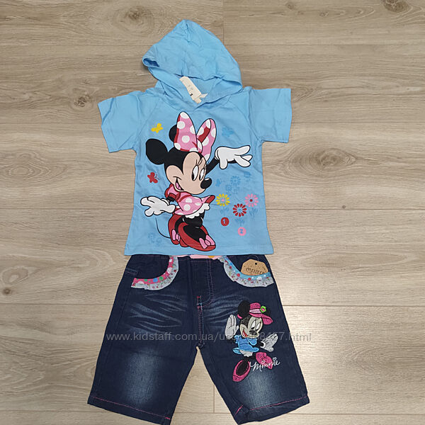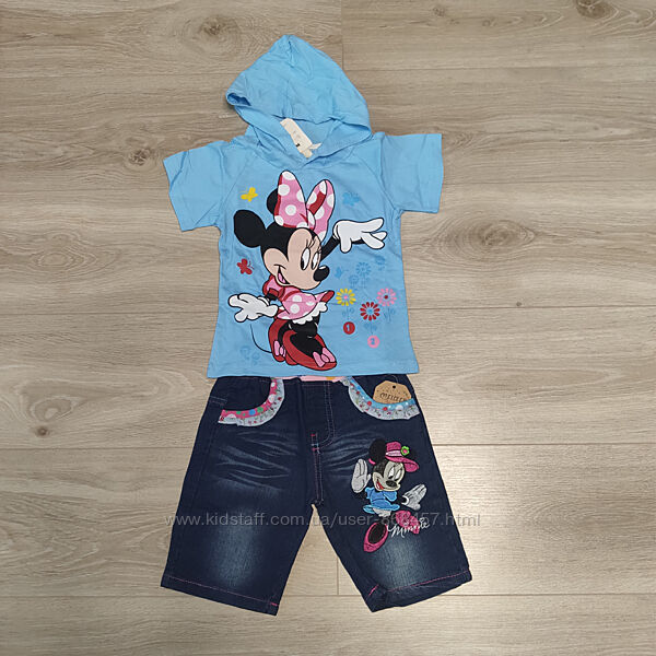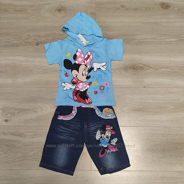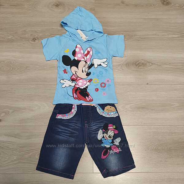 Подробное описание: Джинсовые шорты и футболка Минни Маус 104-110,110-116