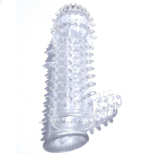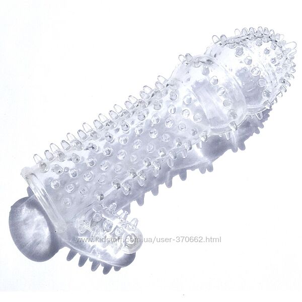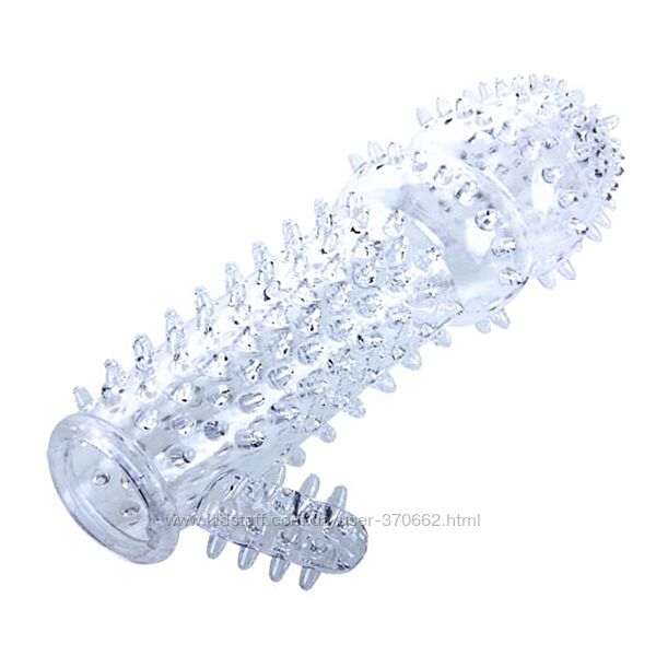 Эластичная насадка с шипиками и дополнительным стимулятором клитора, с ярко выраженными пупырышками на поверхности.
