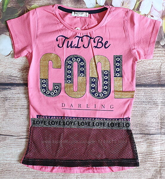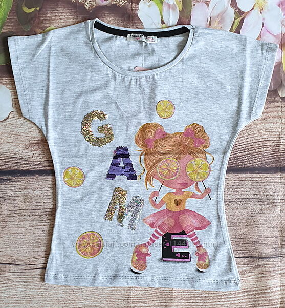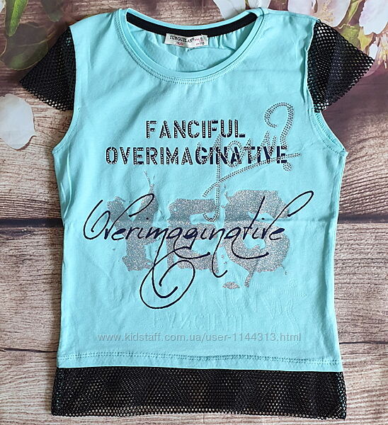 Футболка на девочку приблизительно на рост от 116 до 140. Состав хлопок с добавлением лайкры. Ткань тянется.Производитель: Турция.