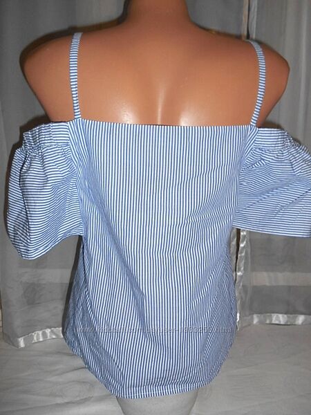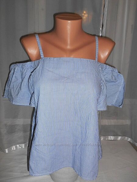 Подробное описание: Полосатый хлопковый топ майка / блузка с открытыми плечами Манго