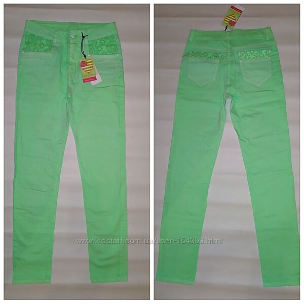 Яркие Джинсы для девочек 164-170рост отлично сидят по фигуре,в поясе резиночка-утяжка 98% котон,2% эластан р164 длина 99,шаг74,пояс33,бедра40-41 р170 длина 102,шаг76,пояс34,бедра41-42