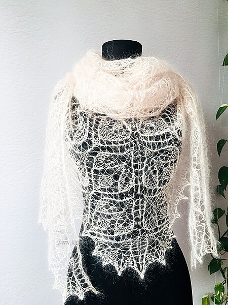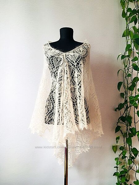 НА ЗАМОВЛЕННЯ 10-14 днівШаль зв’язана з кід мохеру на шовкові, колір - блідо- рожевий, при іншому освітленні здається ніжно-персиковим.