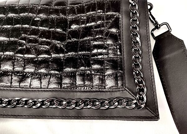 Сумка клатч кожаный черный Asos DesignКожаный клатч ASOS DESIGN декорирован металлической цепочкой - незаменимый удобный женский аксессуар из натуральной кожи. На подкладке. Внутри одно отделение с кармашком на молнии для мелочей. Застёжка на магнитной кнопке. Наплечный ремешок легко снимается. Можно носить как клатч или через плечо.