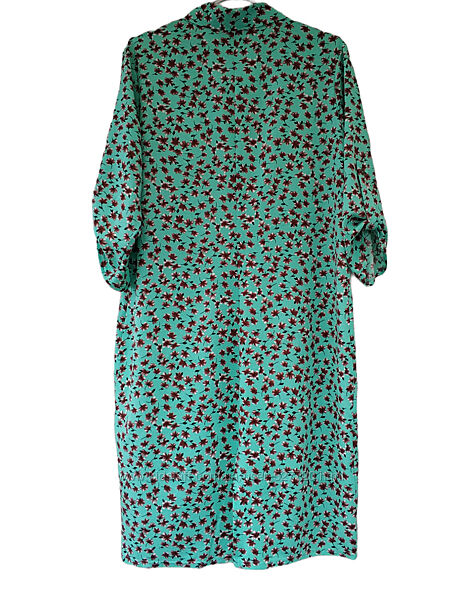 Легкое женское платье прилегающего силуэта с отложным воротникомВверху застегивается на пуговицах, рукав присборен планкой на пуговице (длина рукава не регулируется), сзади имеется разрез.