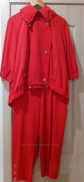 Стильный брючный костюм французского бренда Giani F размер 48/50, но больше подходит на 50 размер, на высокую девушку. Состав ткани: 85% полиэстер, 15% спандекс.Пиджак с запахом на кнопках, застёжка- молния, 2 кармана, спинка удлиненная.