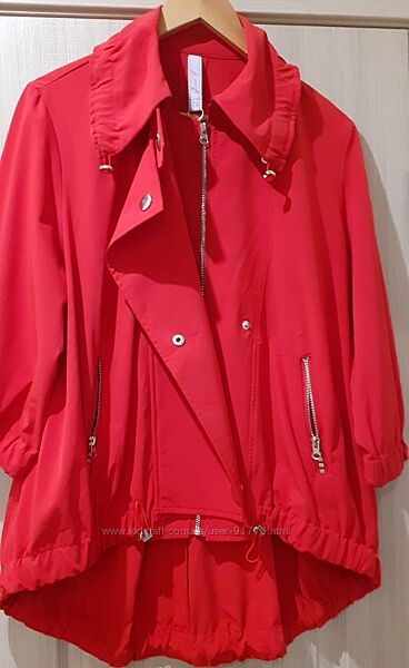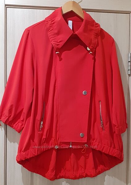 Замеры: ширина плеч - 41 см, длина рукава 3/4 - 45 см, полуобхват груди - 59 см, полуобхват талии - 62 см, длина по спинке - 76,5 см, длина спереди - 600 см.