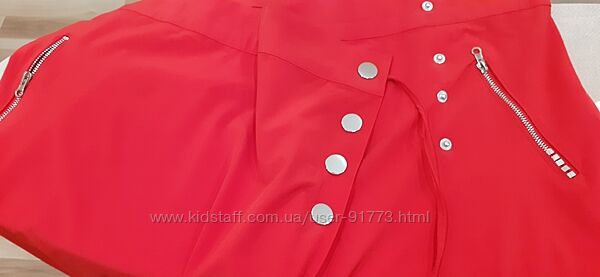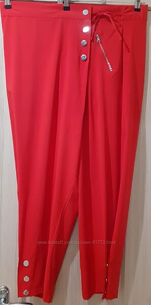 Брюки с запахом, широкие, в поясе есть утягивающая резинка, внизу брючины на кнопках.
