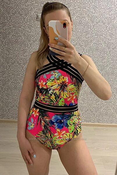 Стильный сдельный купальник цветочный принт отличного качества материала и пошива. В бюстгальтере сьемные поролоновые чашечки, передняя часть купальника на подкладке, спинка высокая. Размеры:S обхват груди 85-90 см талия 64-68 см обхват бедер 87-92 см Замеры в ненатянутом состоянии : полуобхват груди 37 см, полуобхват талии 33 см, полуобхват бедер 39 см длина купальника 69 см