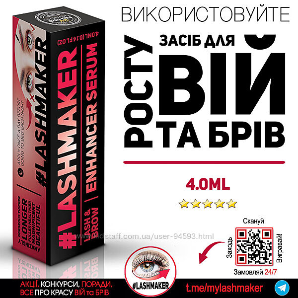 В отличии от других средств для стимуляции роста ресниц, #Lashmaker ― более интенсивная сыворотка с улучшенным составом и увеличенным объемом (4мл), подходит для чувствительных глаз, гарантирует рост ресниц, их удлинение, дает лучшие результаты подросших сильных ресничек.