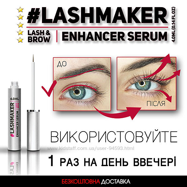 Сыворотка Lashmaker - это Ваш домашний Лешмейкер по доступной цене для безупречных результатов шикарных ресничек и бровей!