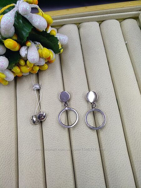 Подробное описание: Срібні гвоздики пусети підвіски круги кільця 925 застіб закрутка