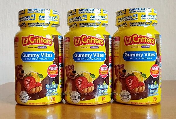 1) Gummy Vites США Мультивітаміни для дітей, дитячі вітаміниL ́il Critters Gummy Vites Повноцінні мультивітаміни у формі ведмежат, 70 жувальних мармеладок