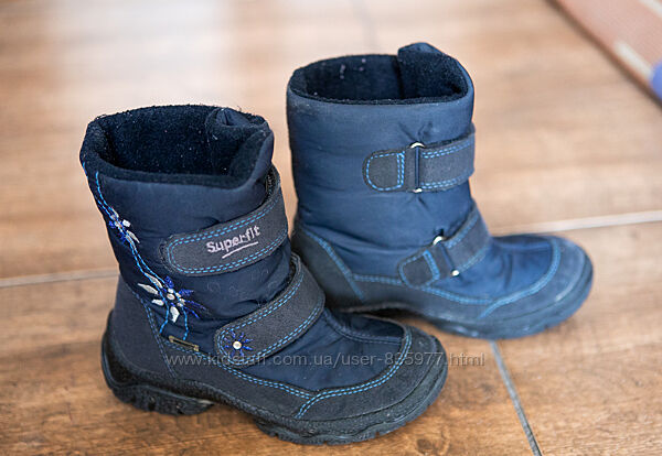 Зимние сапоги Суперфит, 27р. Superfit синиеНормальное состояние не промокают, подошва не стерта. есть небольшие потертости на носках. Очень теплые и легкие. Иногда ребенок даже в лужи становится, ноги сухие.