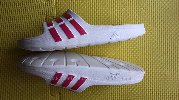 Шльопки Adidas, оригінал. Устілка повністю 20 см. Підійдуть на ногу 19-19,5 см.Білі. Полоски рожеві.