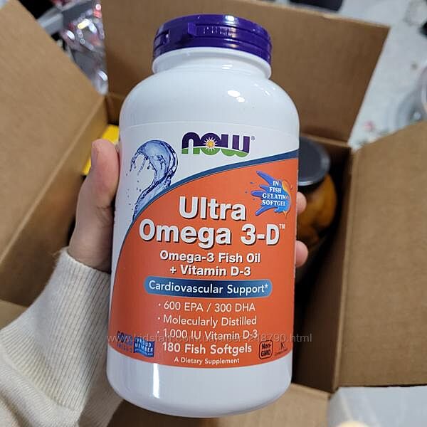 Ultra Omega 3-D от NOW — это наше самое мощное средство с омега-3, содержащее 600 мг ЭПК и 300 мг ДГК в каждой капсуле.