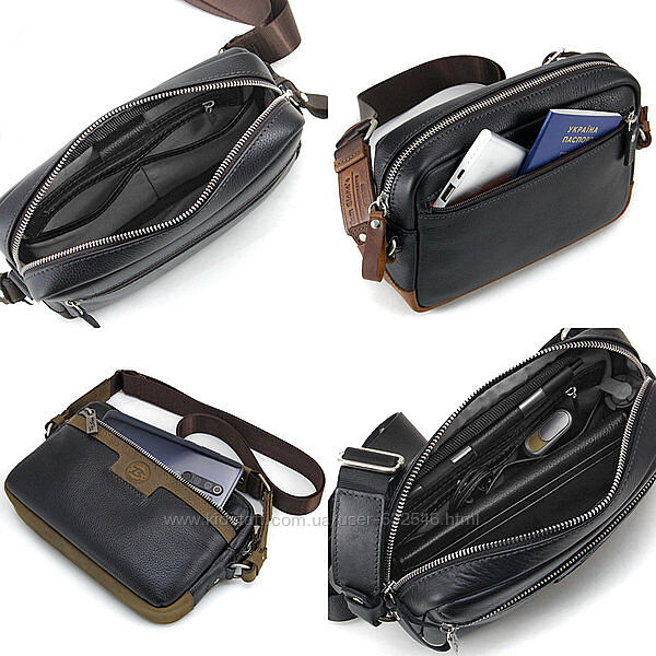 Невелика повсякденна чоловіча сумка, в якій зручно розмістяться всі необхідні для сучасної людини дрібниці. Від великої маси запропонованих на ринку шкіряних аксесуарів відрізняється сміливим рішенням комбінації шкір, що може підкреслити Вашу стильність і індивідуальність. У передній і задній кишенях відділення для пластикових карт, в них може вільно розташуватися телефон 6,4 ". Усередині потайна кишеня на блискавці. Сумку можна носити на плечі або через плече. В основному відділенні є петля для кулькової ручки і зручний органайзер. Місця кріплення ременя до півкільця - виготовлені з подвійної шкіри і додатково продубльовані спеціальним матеріалом. Сумка-кроссбоді носиться на міцному ремені, виготовленому з якісної текстильної стрічки в тон сумки. Сумка виготовлена з натуральної цілісної напівглянцевої шкіри Римма. Використана металева блискавка - фірми YKK (Японія). Розмір 22 * 14 * 5 см. Довжина лямки регулюється від 90 см 160 см. Країна-виробник - Україна. Продається в подарунковій коробці.