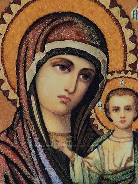 Икона Божьей Матери с янтаря в деревянной рамке. Размер с рамкой 19.5 см*24.5 см. Новая.ТОП предложения