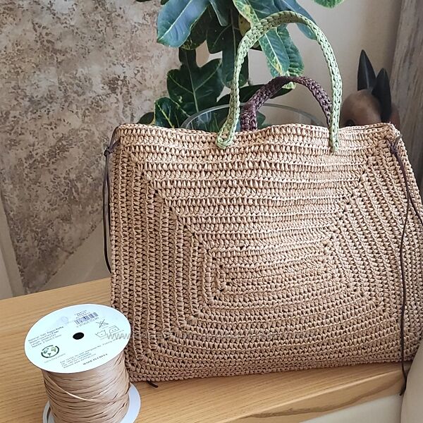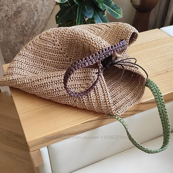Связана из рафии Ispie цвет крафт, замшевые шнурочки.