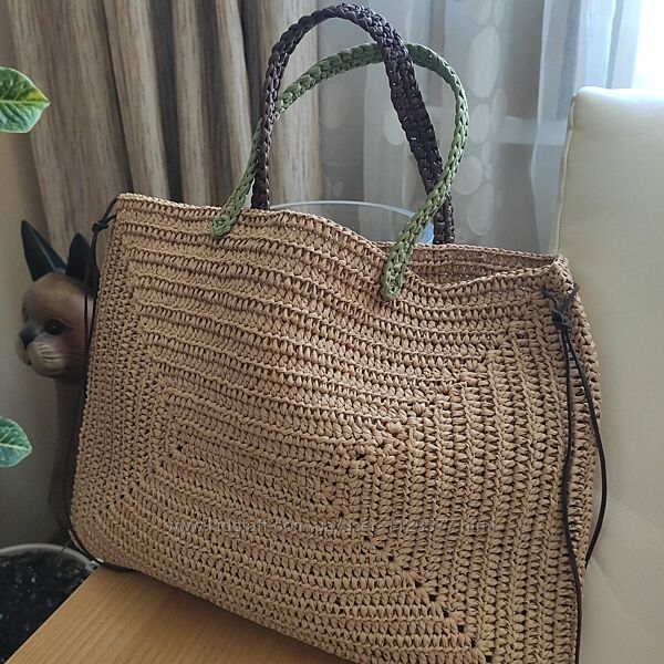 Сумка из рафии ручной работы.Размеры 42х32 см, вместительная. Отлично подойдёт для города, пляжа, прогулок. Лёгкая (всего 230 грамм), модная натуральная эко сумка.