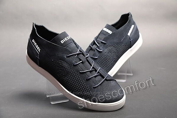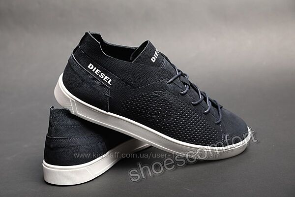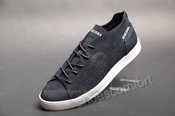 Подробное описание: Мужские кожаные кеды Diesel Pirate с перфорацией темно-синие