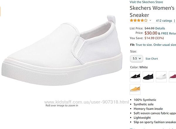 Женские слипоны Skechers womens Skechers Street Women´s Poppy- Every Daisy Sneaker, White, 5.5 US кроссовки кеды. США. Оригинал.Размер US5.5 EU35.5 CM22.5
