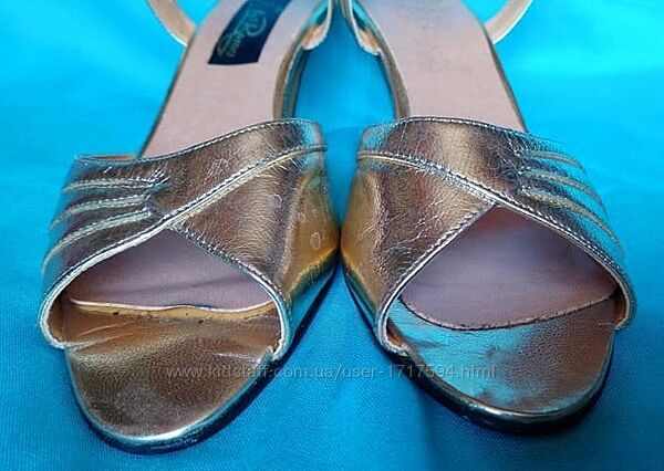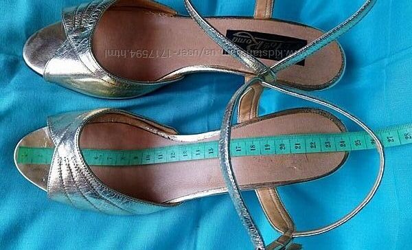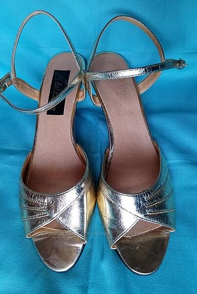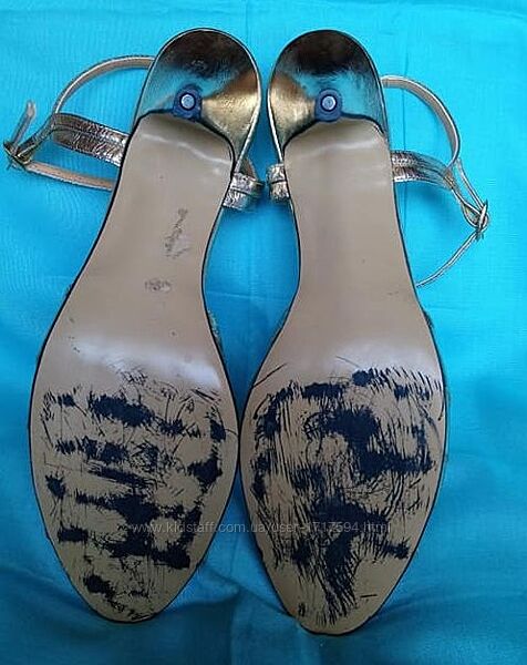 Босоножки Fido di Roma золотистые р.37 на каблуке. Застегиваются на ремешок с металлической пряжкой.Очень хорошее состояние, целые набойки, застежки работают. Нюанс на каблуке – видно на фото.