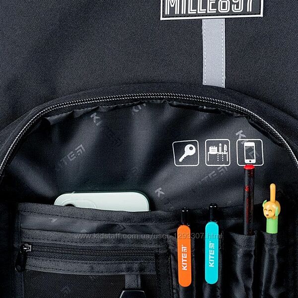 1 вместительный передний карман, по размеру адаптированный под ланчбокс или пенал;