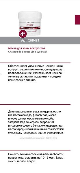 Подробное описание: Распив CHRISTINA Chateau de Beaute Vino Eye Mask Шато Маска вокруг глаз век