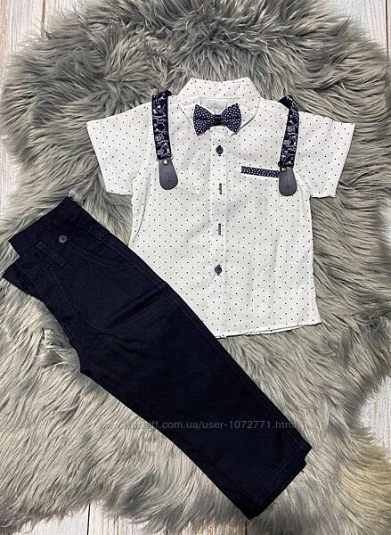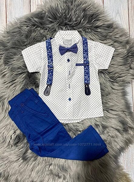 Предлагаю Вашему вниманию нарядные костюмы для мальчиков.Производство Турция. Отлично подойдут на праздники.Стильный костюм: рубашка с коротким рукавом, брюки, подтяжки и галстук-бабочка для мальчика.