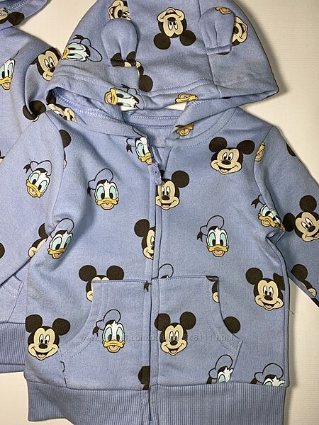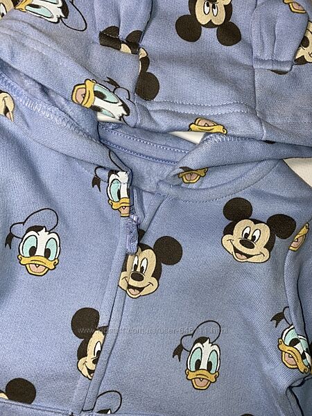 Голубая кофточка с изображением персонажей Дональда Дака и Микки Мауса. На капюшоне ушки. Спереди два кармана. Немного утеплена, есть небольшой начесик