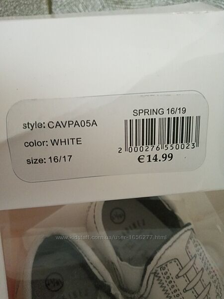 Размер производителя 16/17, стелька 10,5 см., (надо рассчитывать на ножку 9-10 см.