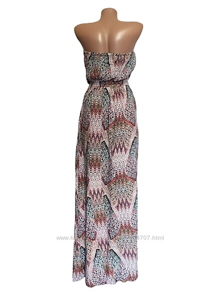 Платье сарафан New Look (Размер 42, XS, UK10, EU38)Изготовлен из приятного, легкого материала, 100% вискоза. Длина макси. Свободная юбка и присборенная талия, которая подчеркивает силуэт. Лиф-бандо позволит оголить плечи и показать красивый загар. Два боковых кармана. По талии эластичная резинка.