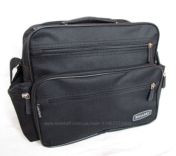 Мужская сумка Wallaby, размер 29х24х15смДва вместительных основных отделения на молнии. На фасаде объемный карман на змейке и 2 отделения на змейке. По обеим бокам сумки накладные карманы на змейке размером 12х9х4см для телефона и полезных мелочей. Удобная ручка для руки. Регулируемый ремень на плечо.
