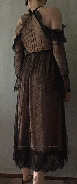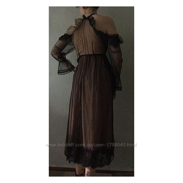 Стильна вечірня сукня на корпоратив і випускний чорно-бежева. Відрізна по лініі таліі. Основа сукні кольору топленого молока ( 95%-поліестер, 5%-бавовна, легка і тонка). Ліф : основа з сіткою та мереживом. Спідниця широка, злегка драпирована з подвійною сіткою (нижня в горошок з мереживом, верхня проста, тонка). Ззаду потайна довга блискавка - 52 см (зручно надягати сукню). Розмір L. Довжина від горловини-124 см, довжина рукава-56 см, НОТ-35 см, НОС-62 см ( приблизно, спідниця широка). Довжина від горловини до талії-28 см, по спинці-32 см. Зріст на фото 178 см. Нова. Турція. Передоплата на карту, часткова передоплата, наложний платіж.Другие объявления продавца