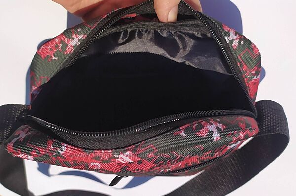Барсетка через плечо.Изготовлена из качественной непромокаемой ткани с кож зам вставками.