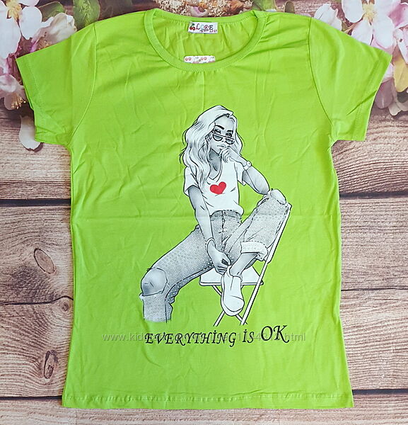 Футболка на девочку приблизительно на рост от 134 до 164. Состав хлопок с добавлением лайкры. Ткань тянется.Производитель: Турция.