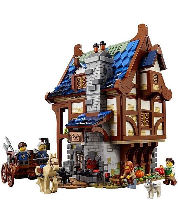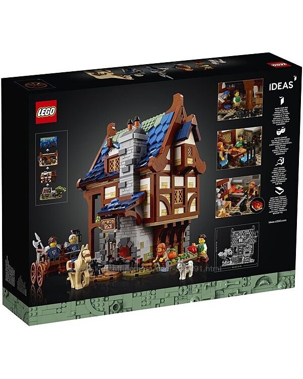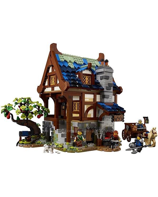 Отправьтесь в путешествие назад во времени с этой удивительной моделью рабочего места и дома средневекового кузнеца LEGO®. Рассмотрите множество реалистичных деталей и уникальных элементов внутри трехэтажного здания: от кухни и спальни в средневековом стиле до полностью оборудованной кузницы. Нажмите на меха, чтобы засветился горн, и осмотрите сад, где растет корявая яблоня и находится колодец, мишень для лучников и лошадь с телегой.