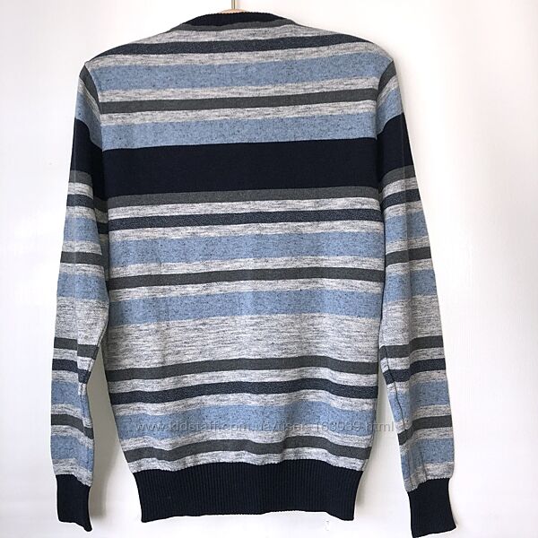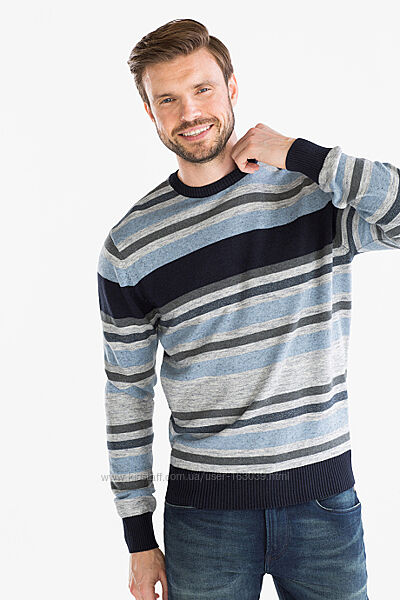 Интересный хлопковый свитер для мужчин с интернет-магазина C&A Свитер серо-голубого цвета в полоску, очень приятный к телу, 100% хлопок Размер S Замеры р-ра S: Длина изделия - 70 Ширина в груди (под рукавами) - 48 Ширина в плечах - 43 Длина рукава - 67 Длина рукава от ворота - 83