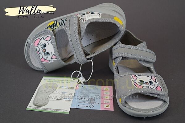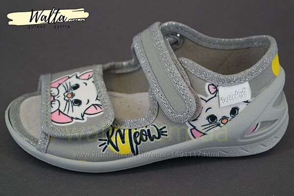 Подробное описание: 23р Валди Waldi детские текстильные босоножки - тапочки с кошкой девочке