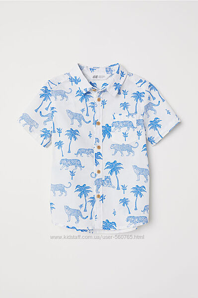 Хлопковая рубашка H&M Англия для мальчика с коротким рукавом с принтомРазмеры: