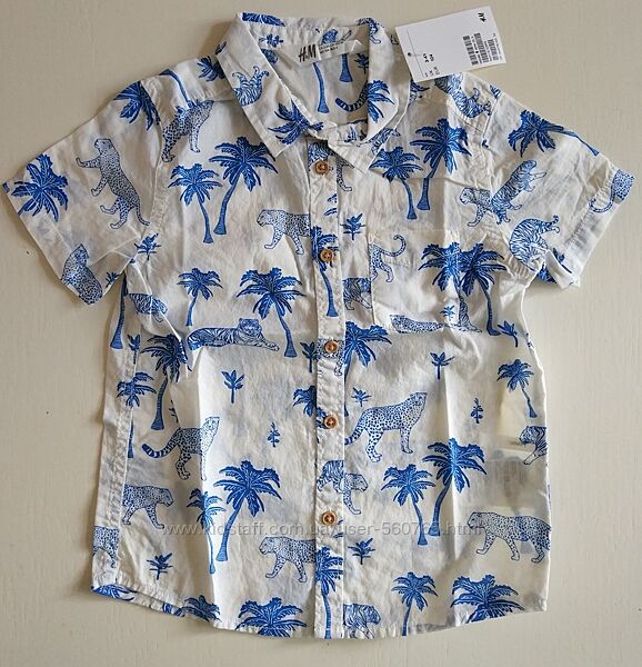 Подробное описание: Рубашка H&M Англия 98-104 см 2-4 года хлопок с тиграми и пальмами