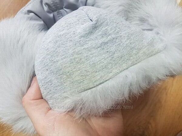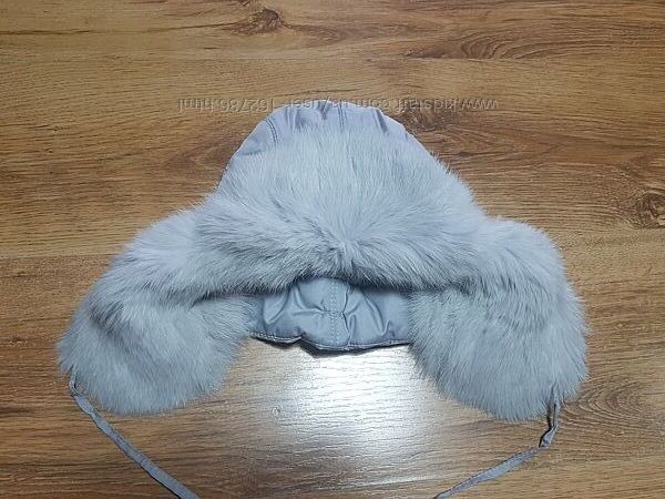 Зимова шапочка ушанка з натуральним хутром. Хутро – натуральний кролик. Ткань – плащьовка ,не продуває та не промокає. Підклад – бавовна, голова не пітніє. Утеплювач - синтепон. Колір світло-сірий. Розмір 54-56, є утяжка для регулювання розміру, а також кнопки на , це дозволяє вушки пристебнути до шапки. На правому боці аплікація із страз. Виробник-Fiona, Україна. Стан бв відмінний, після однієї дитини, є бірка. Недолік на останньому фото, на впливає на зовнішній стан.